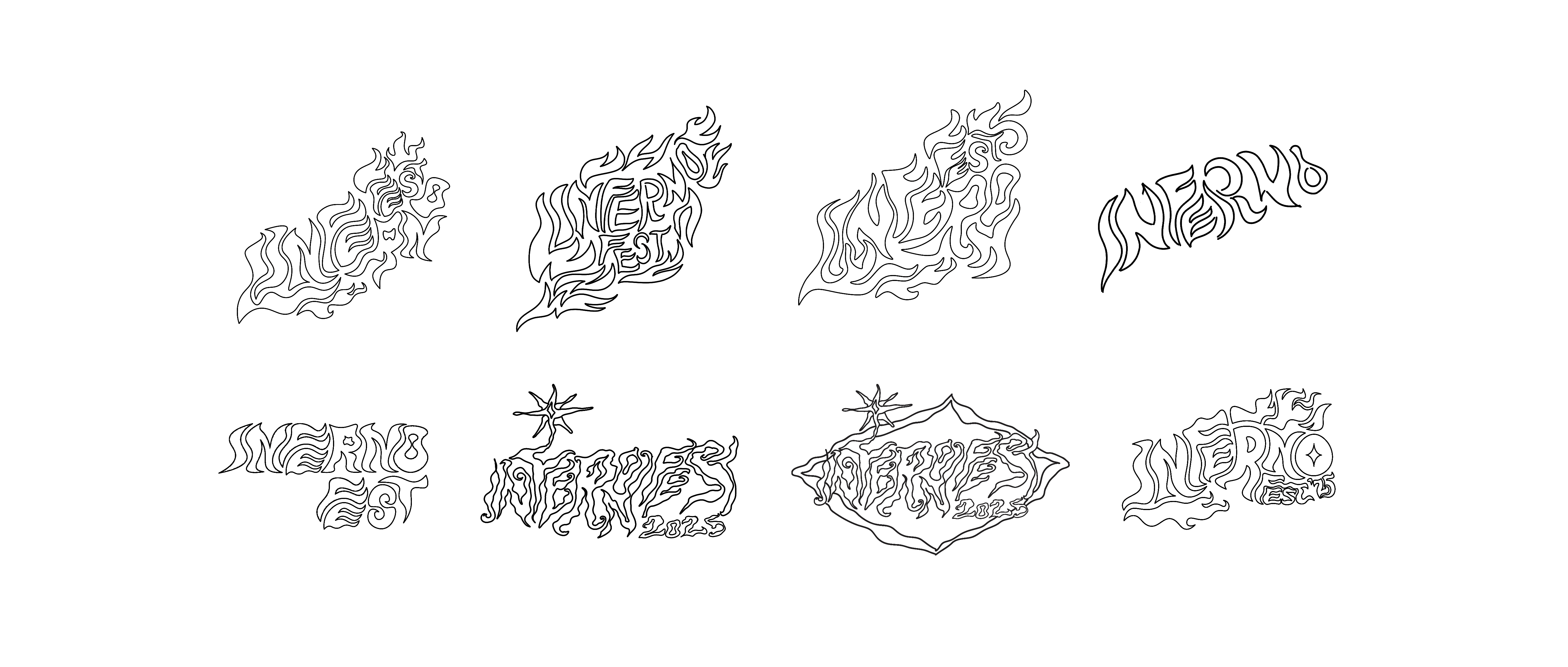 As the logo formed into an organic and fiery shape, legibility became a challenge. This prompted my exploration to experiment with form and hand-lettering, balancing legibility with the form of the logo.