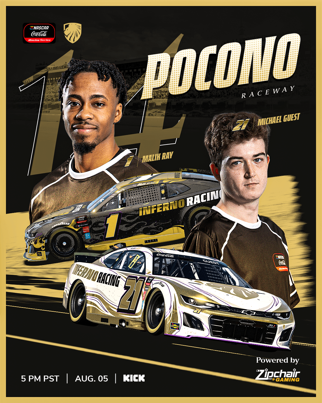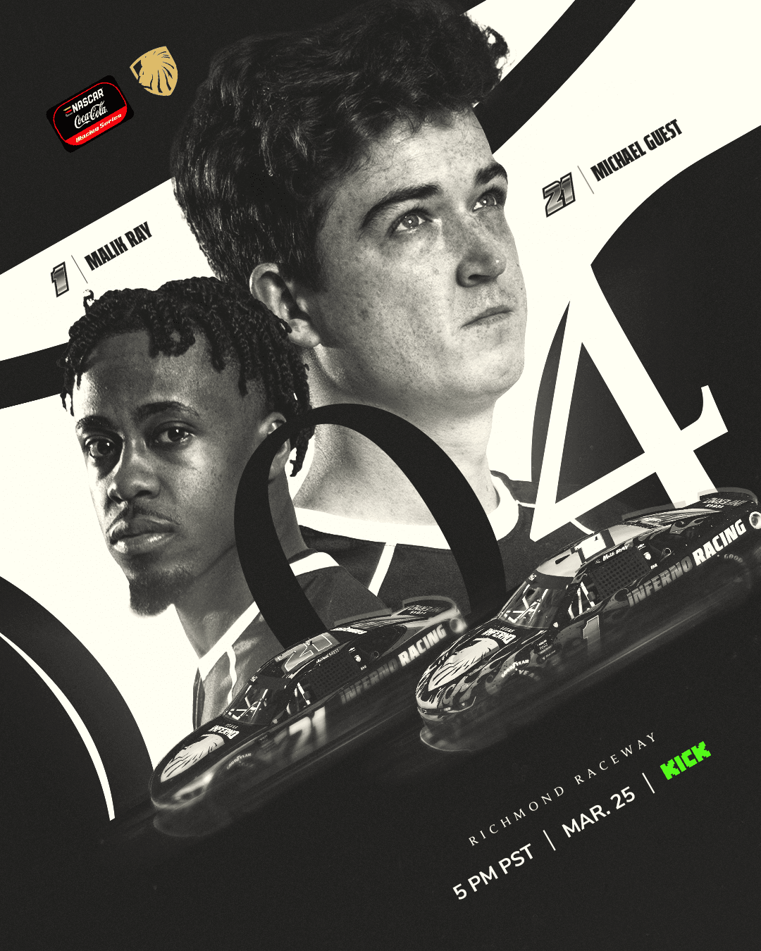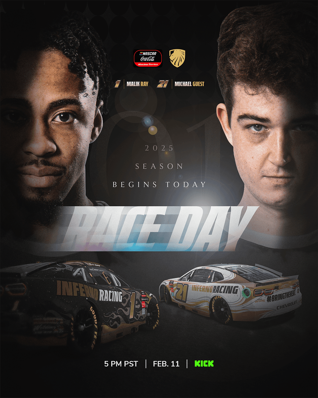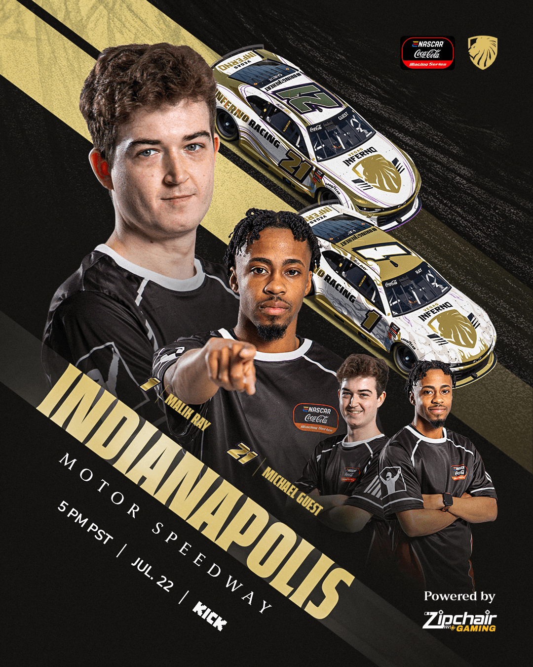 After welcoming two new ENASCAR drivers—the eSports division of NASCAR—to Inferno, the leadership team asked me to create a series of social media posts to promote the bi-weekly races for the 2025 ENASCAR Coca-Cola iRacing Series.