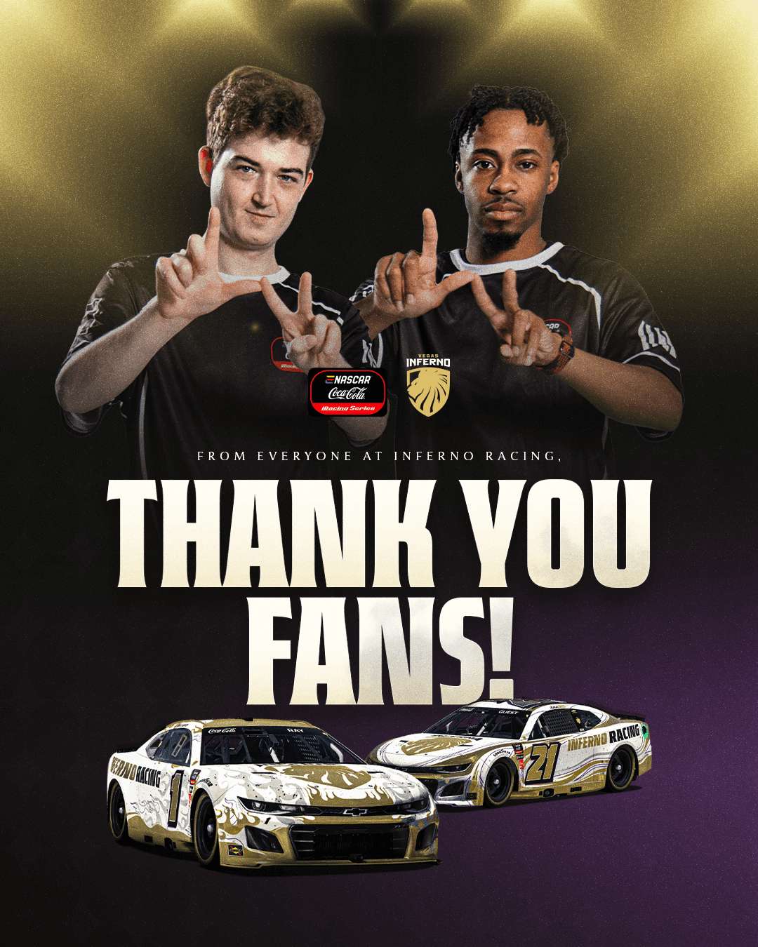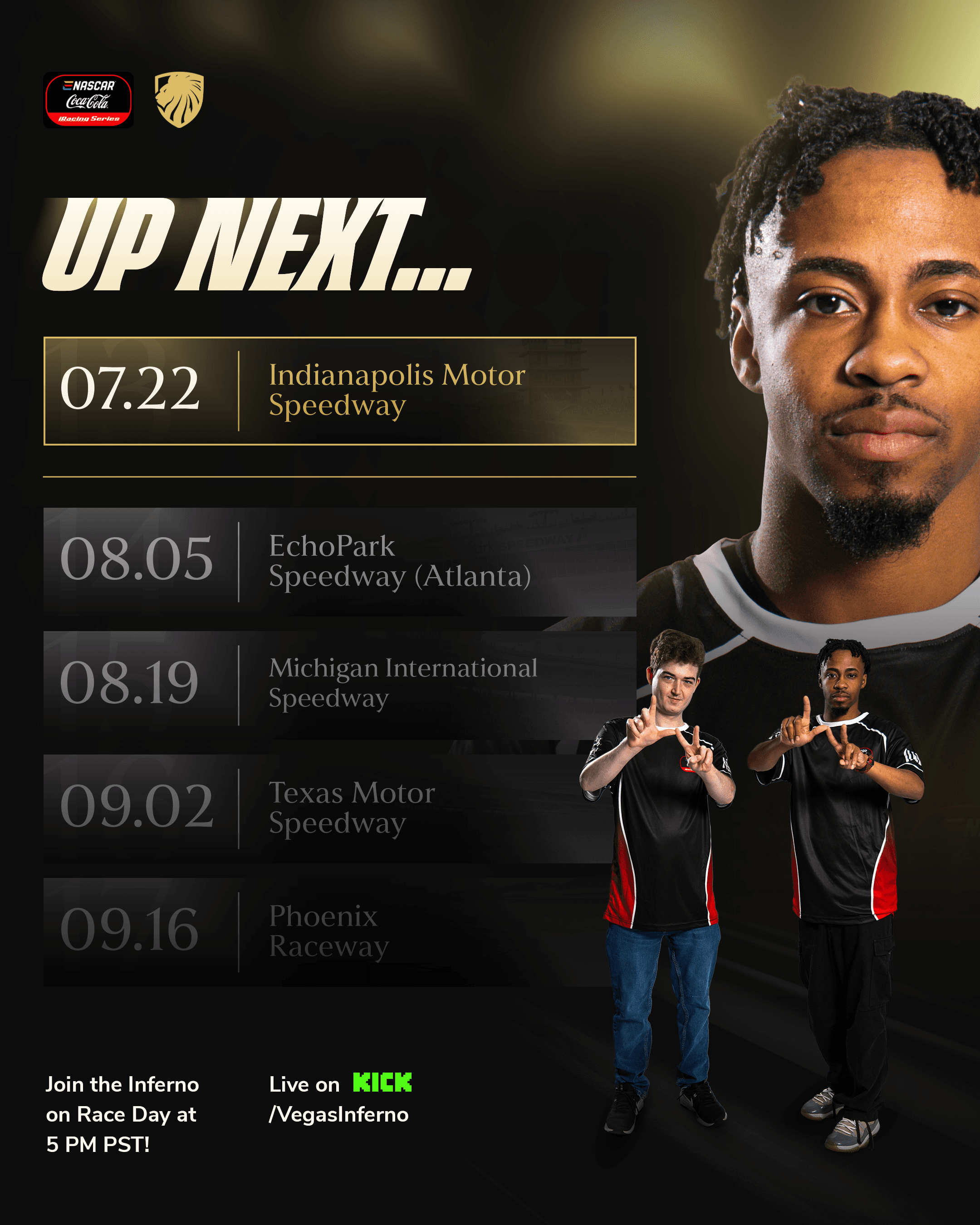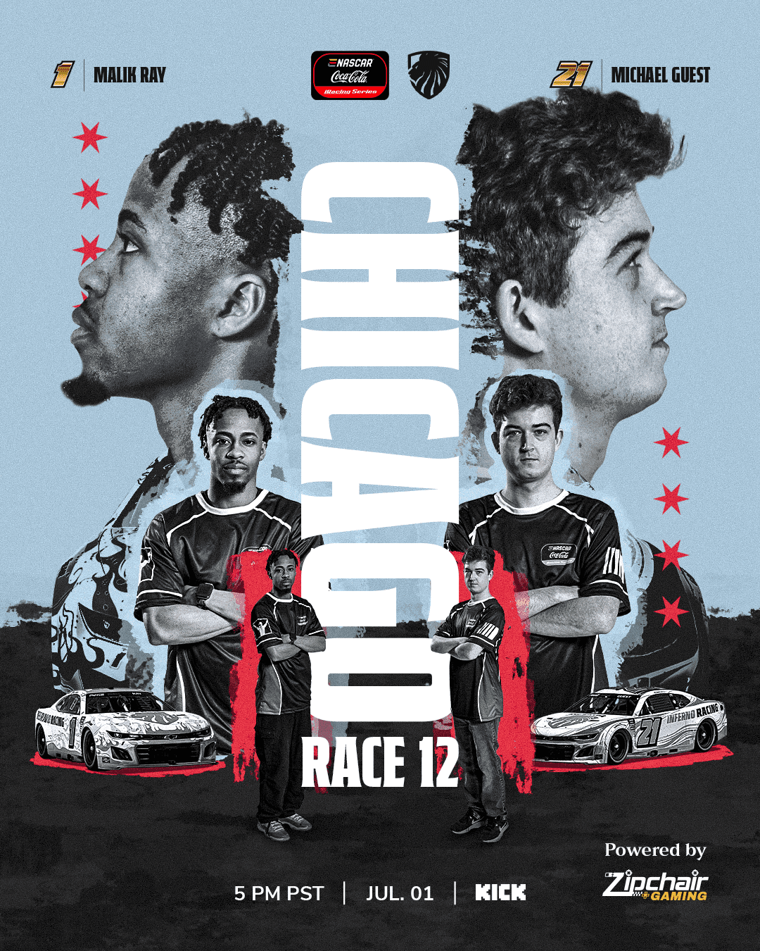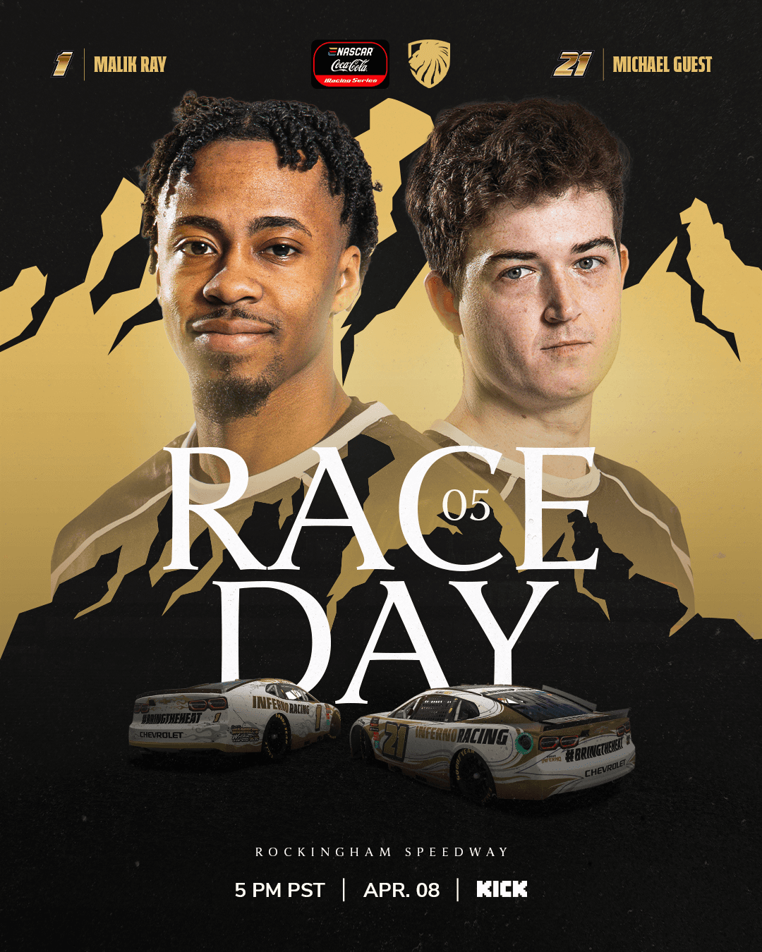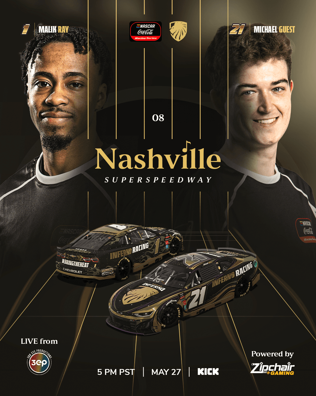 After welcoming two new ENASCAR drivers—the eSports division of NASCAR—to Inferno, the leadership team asked me to create a series of social media posts to promote the bi-weekly races for the 2025 ENASCAR Coca-Cola iRacing Series.
