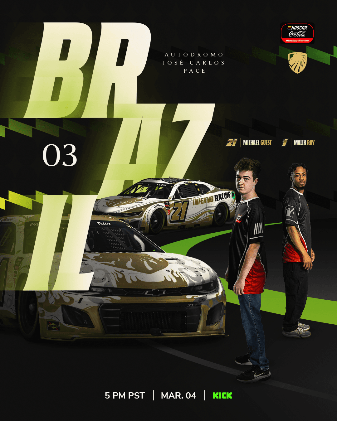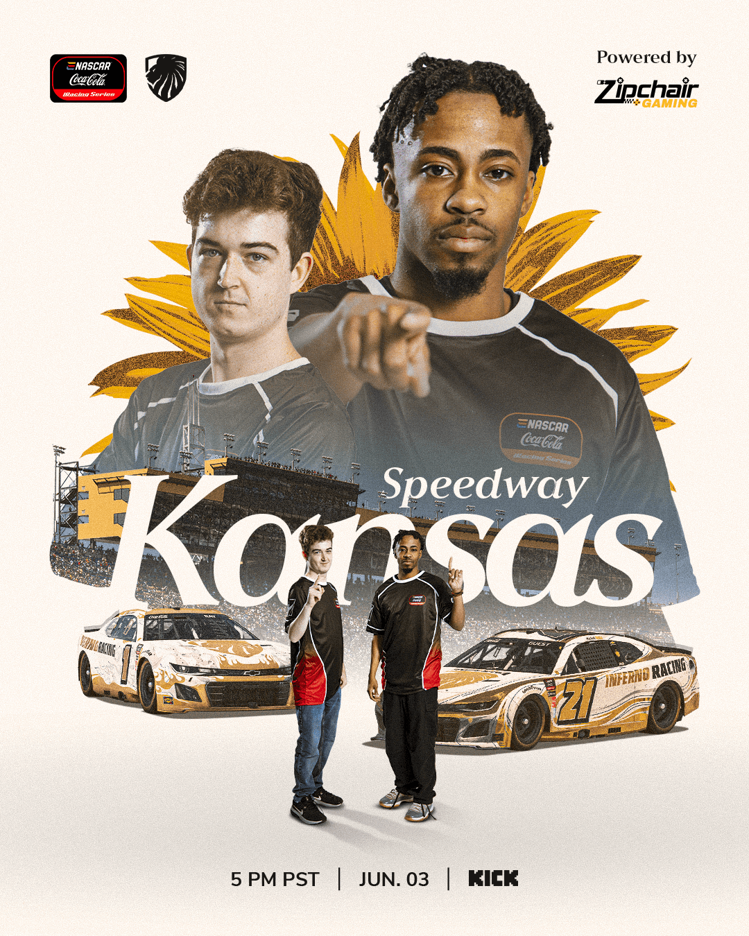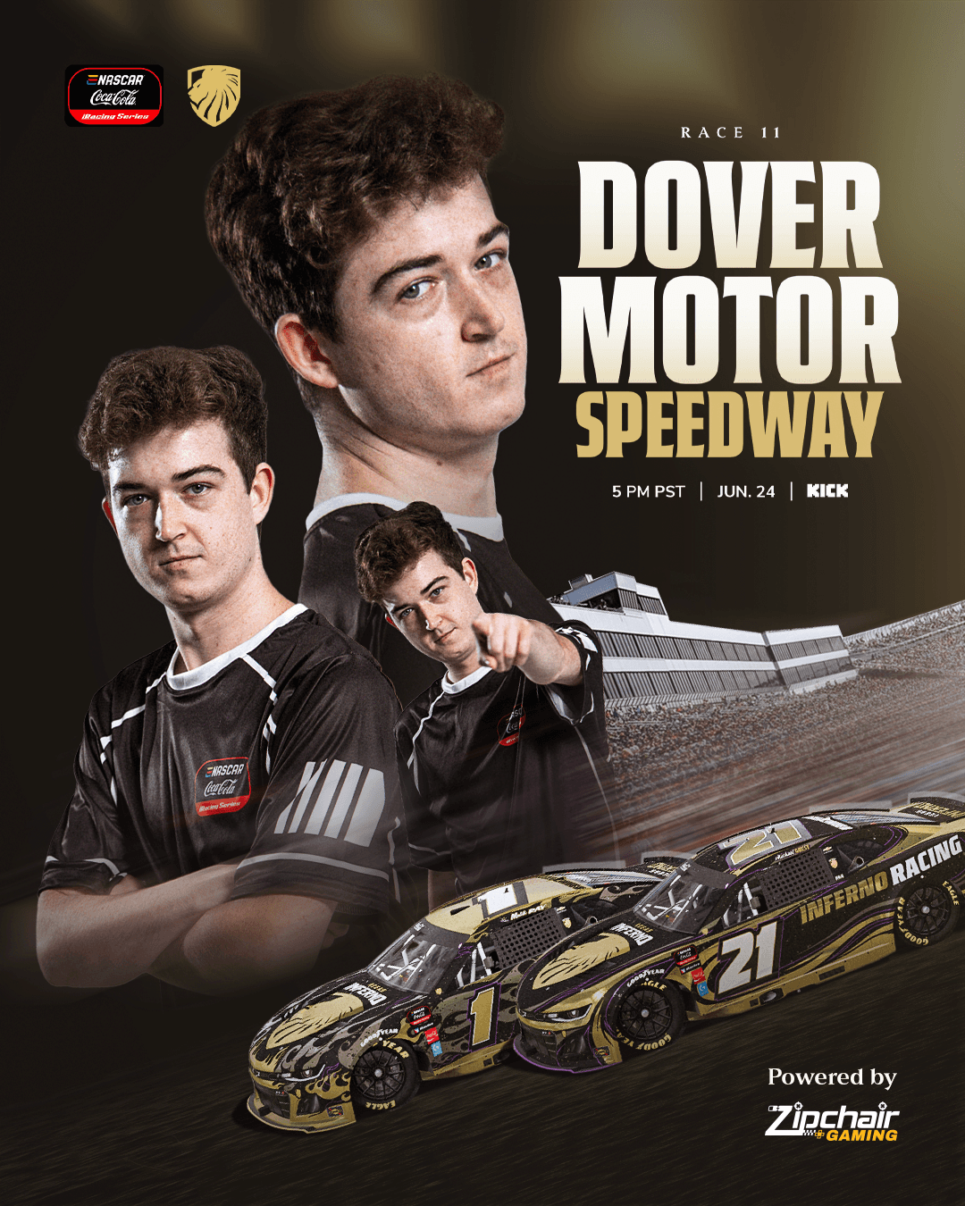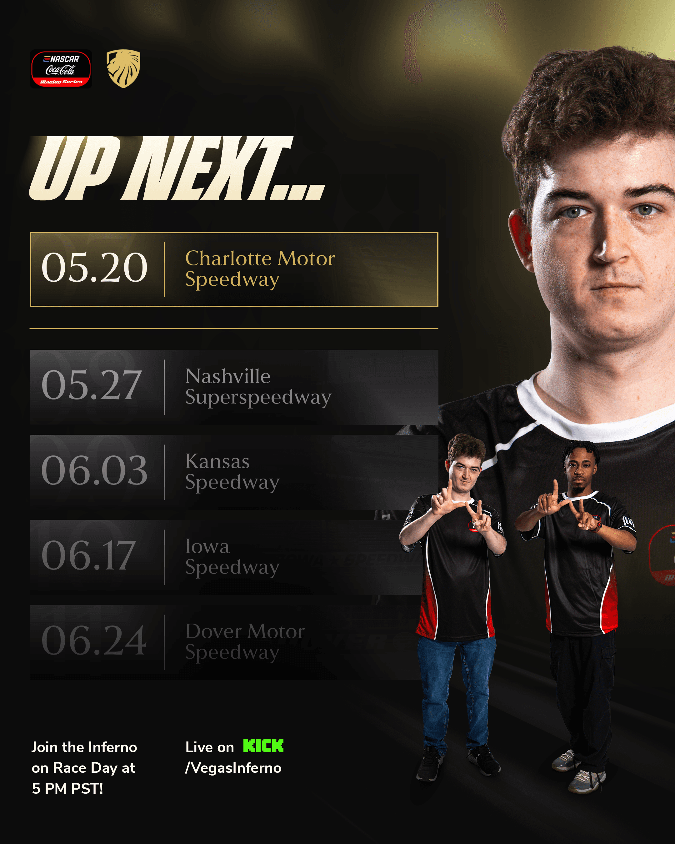 After welcoming two new ENASCAR drivers—the eSports division of NASCAR—to Inferno, the leadership team asked me to create a series of social media posts to promote the bi-weekly races for the 2025 ENASCAR Coca-Cola iRacing Series.