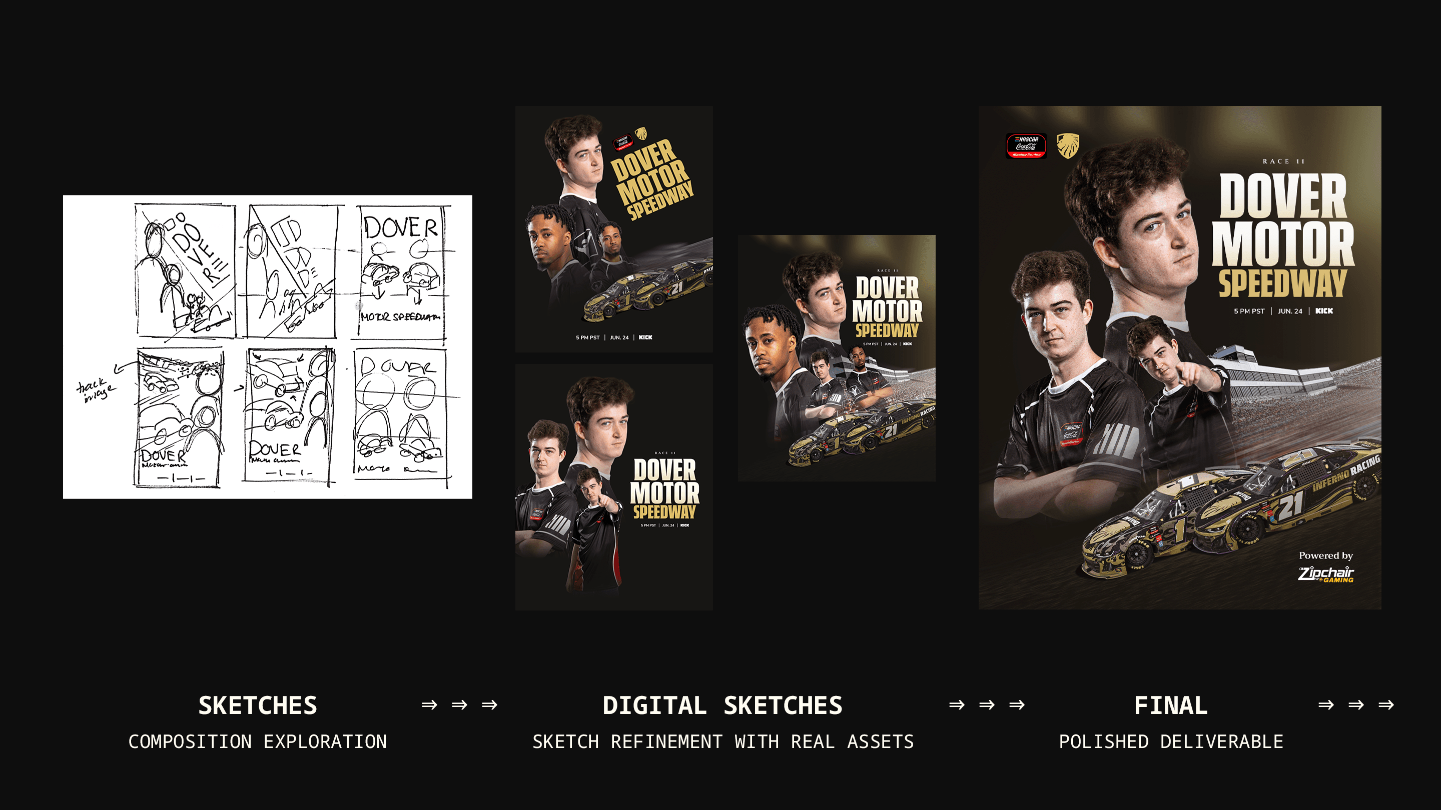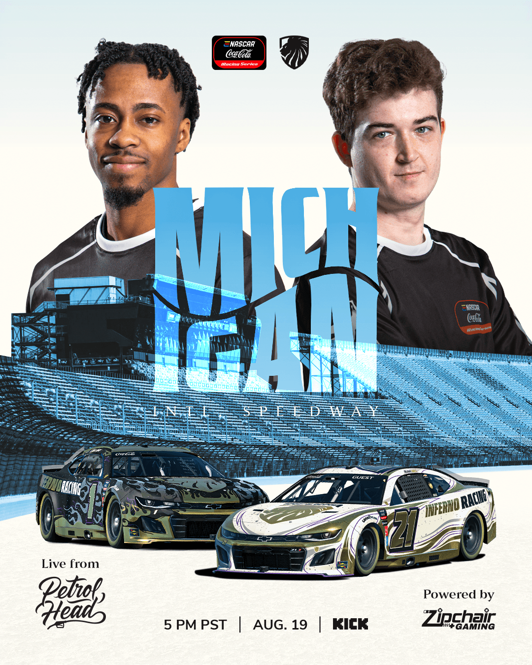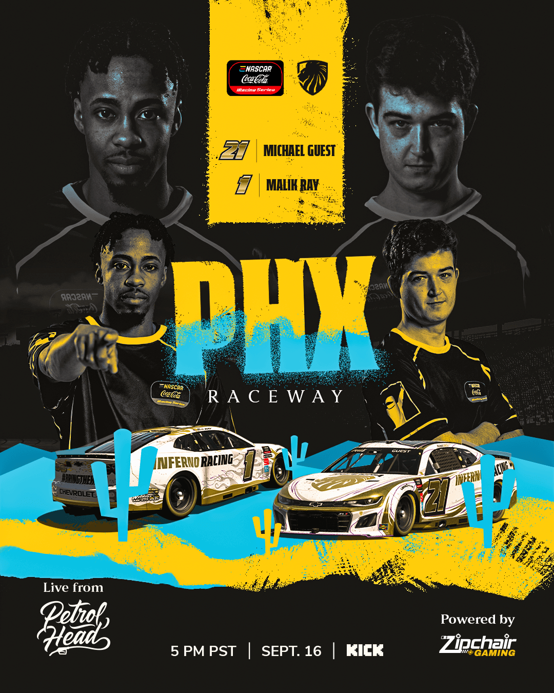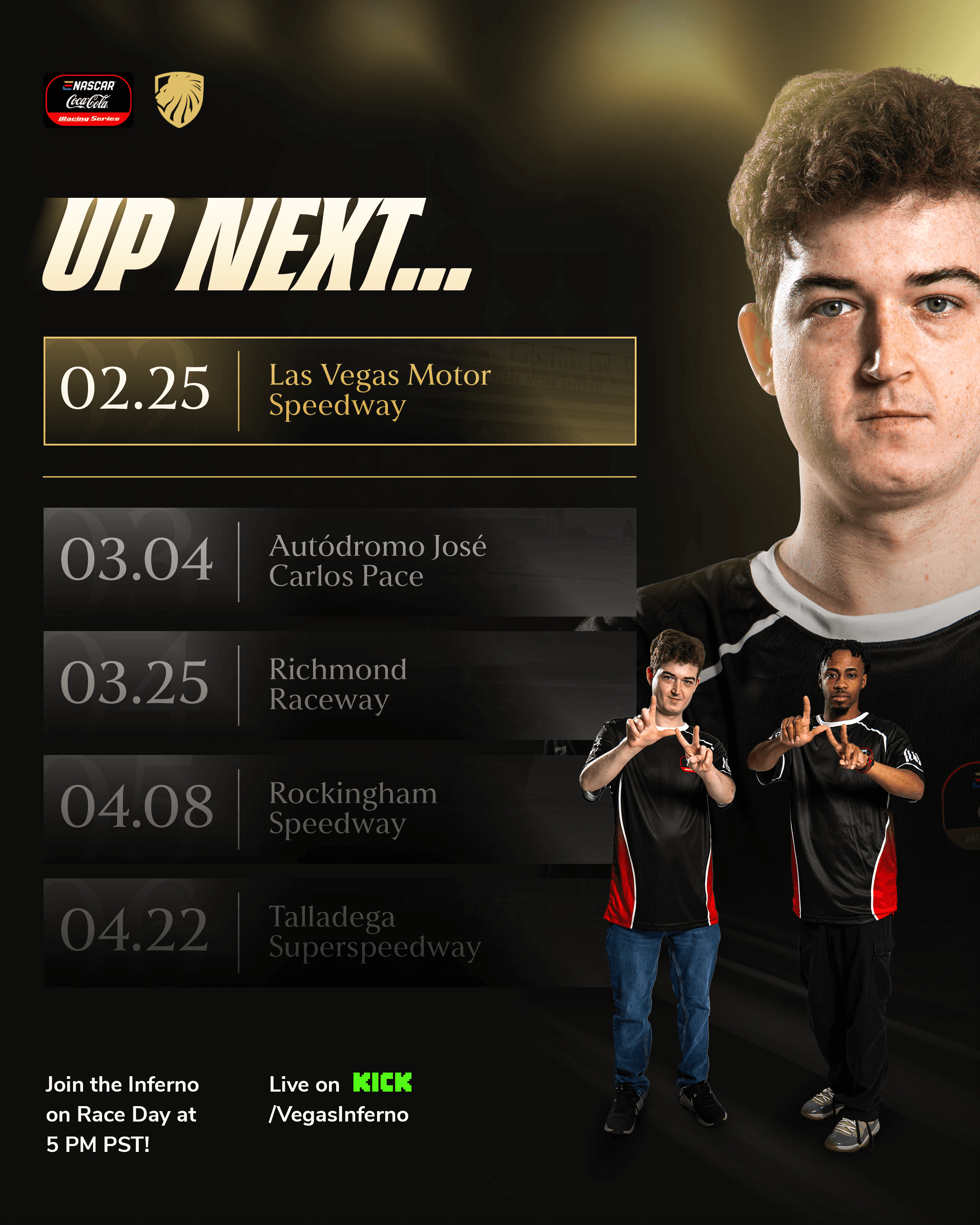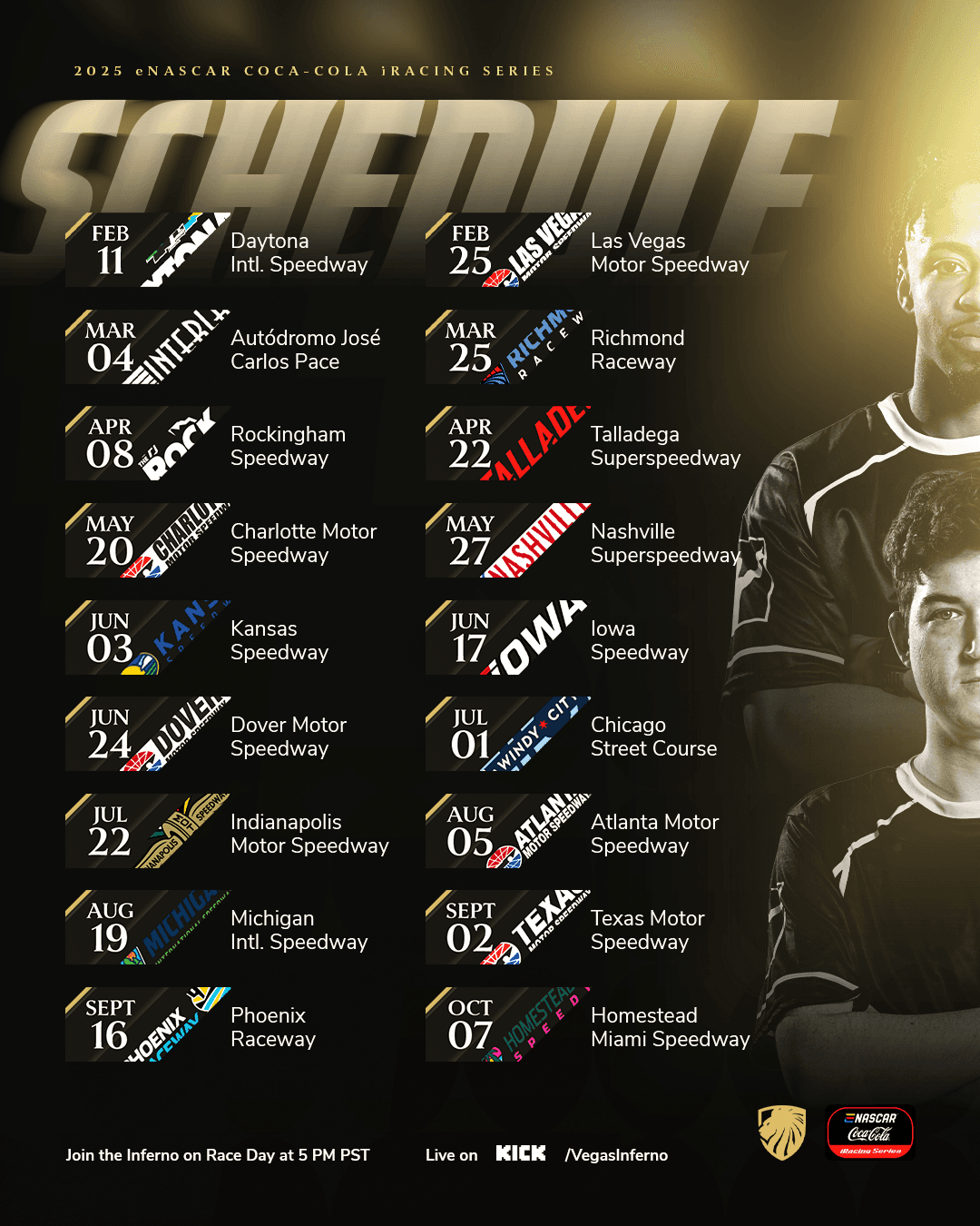 After welcoming two new ENASCAR drivers—the eSports division of NASCAR—to Inferno, the leadership team asked me to create a series of social media posts to promote the bi-weekly races for the 2025 ENASCAR Coca-Cola iRacing Series.
